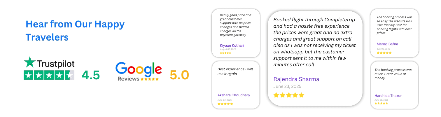 CompleteTrip is a global travel platform with a decade of experience that makes booking flights and hotels simple and affordable. Whether you are looking for international or domestic flights at a cheaper price, you can visit us, find the best deals, and book your entire trip in one place. With 24x7 support and access to thousands of airlines and hotels worldwide.